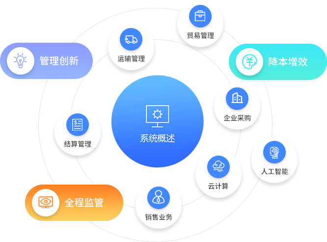 建立統一信息管理平臺,完成從業務執行層到管理層和決策層的信息化建設,實現大宗商品運輸和采購銷售的全過程管理,助力企業的管理創新、降本增效,提升企業經濟效益、管理效益、社會效益。